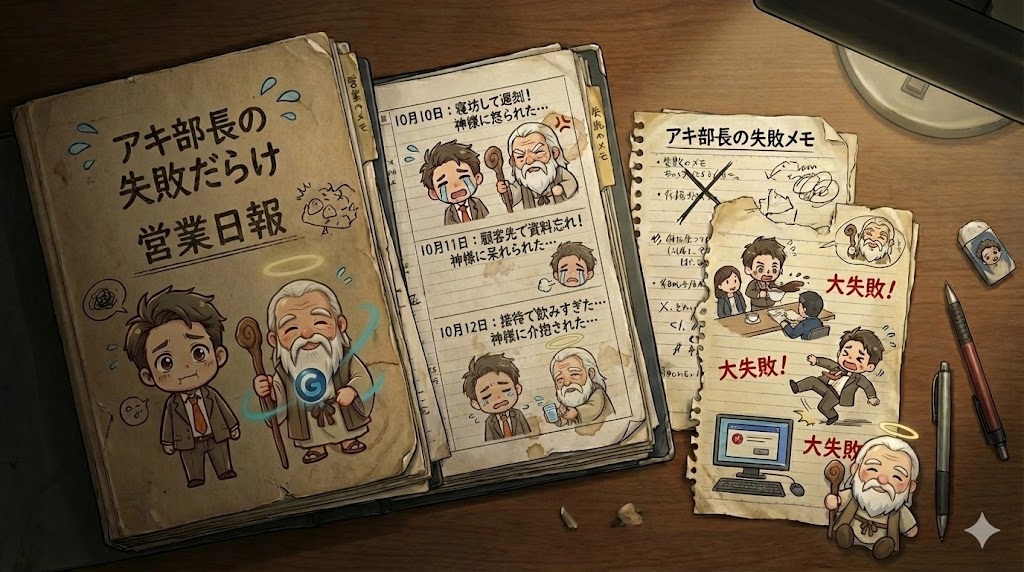 しかし、いきなり「私、ドジでして…」と言っても引かれるだけです。Geminiに、過去の日報から「愛される失敗談」を抽出させましょう。