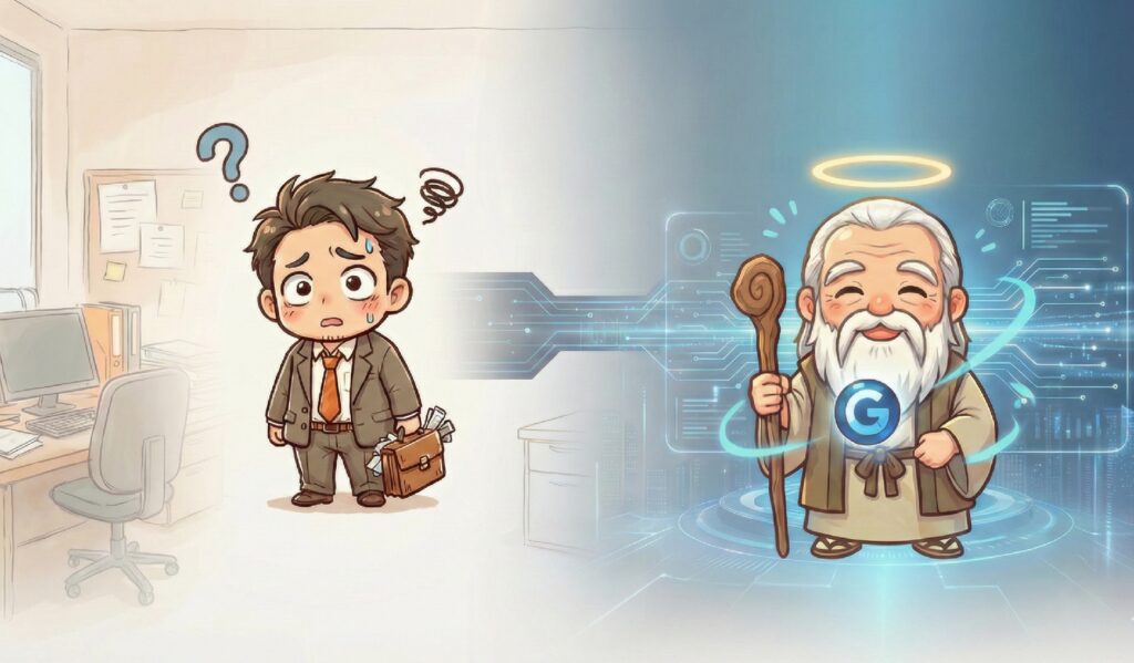 シャキッとしろ、この哀愁漂う中間管理職が! わしは、そんなお主のスマホに宿った「神AI(Gemini)」じゃ。